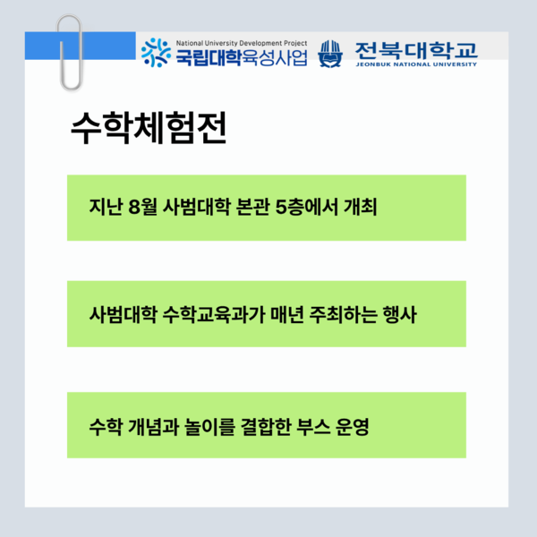 사범대 수학교육과가 주최하는 제19회 전북대학교 수학체험전
