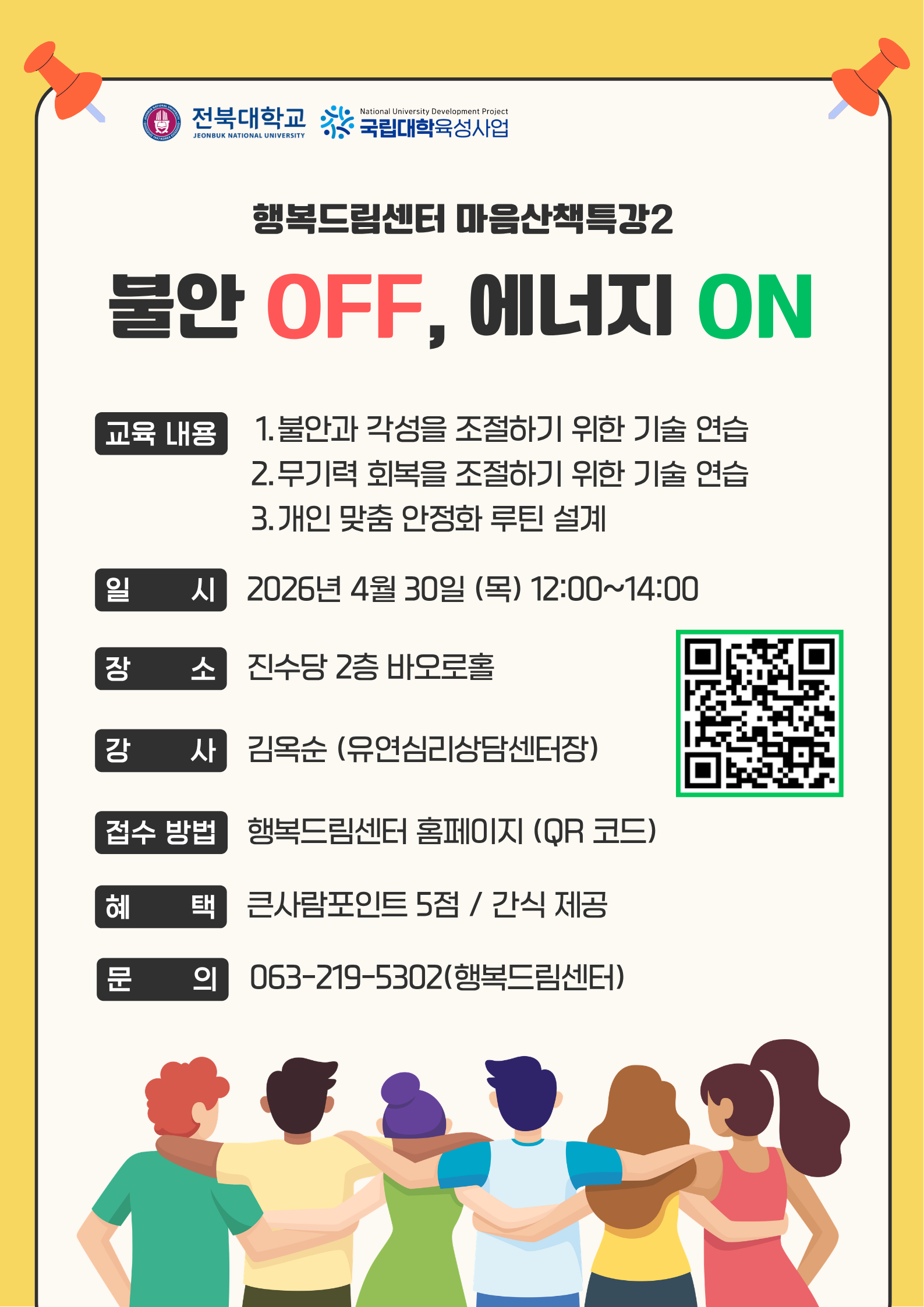 [국립대학육성사업] 전북대학교 행복드림센터 마음산책특강 2 - "불안 OFF, 에너지 ON" 프로그램 신청 안내